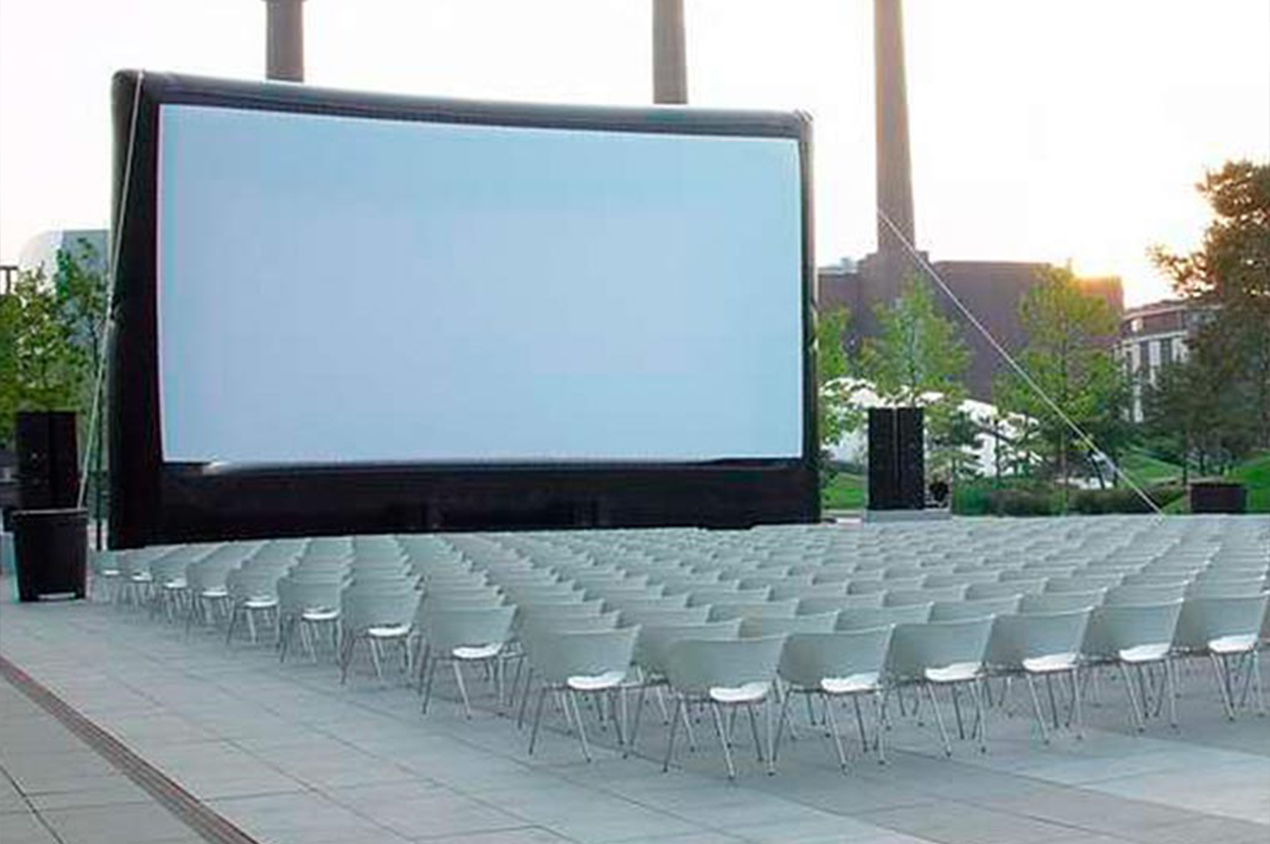 schermi pop-up, per arene, cinema all'aperto, drive-in, proiezioni di grandi formati in genere, anche galleggianti. Schermi convessi per proiezione di contenuti in realtà virtuale, dome per la proiezione a 360°. Più veloci, e pratici nel trasporto dei classici schermi a traliccio, pronti in 15 minuti